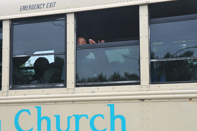 Last goodbye before heading to camp. He hadn't been so sure about this, but he got in the bus so fast we had to say goodbye through the bus window...